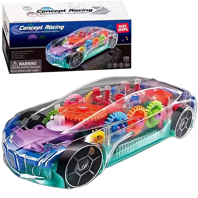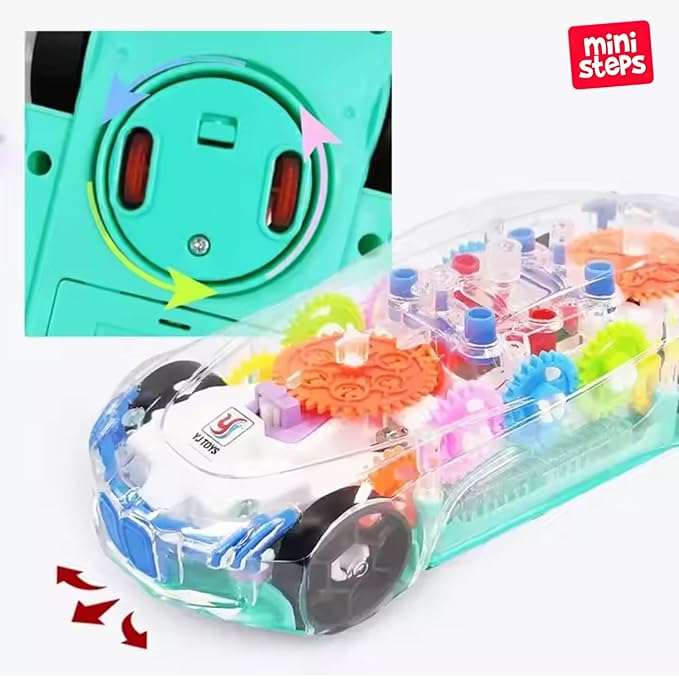 3D Baby Car Toy with Lights & Music – 360° Rotating Mechanical Gear Simulation Car for Kids.