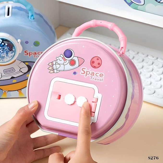 Cartoon Space Piggy Bank – Cute Coin Saver for Kids (Sky Blue, Pack of 1)