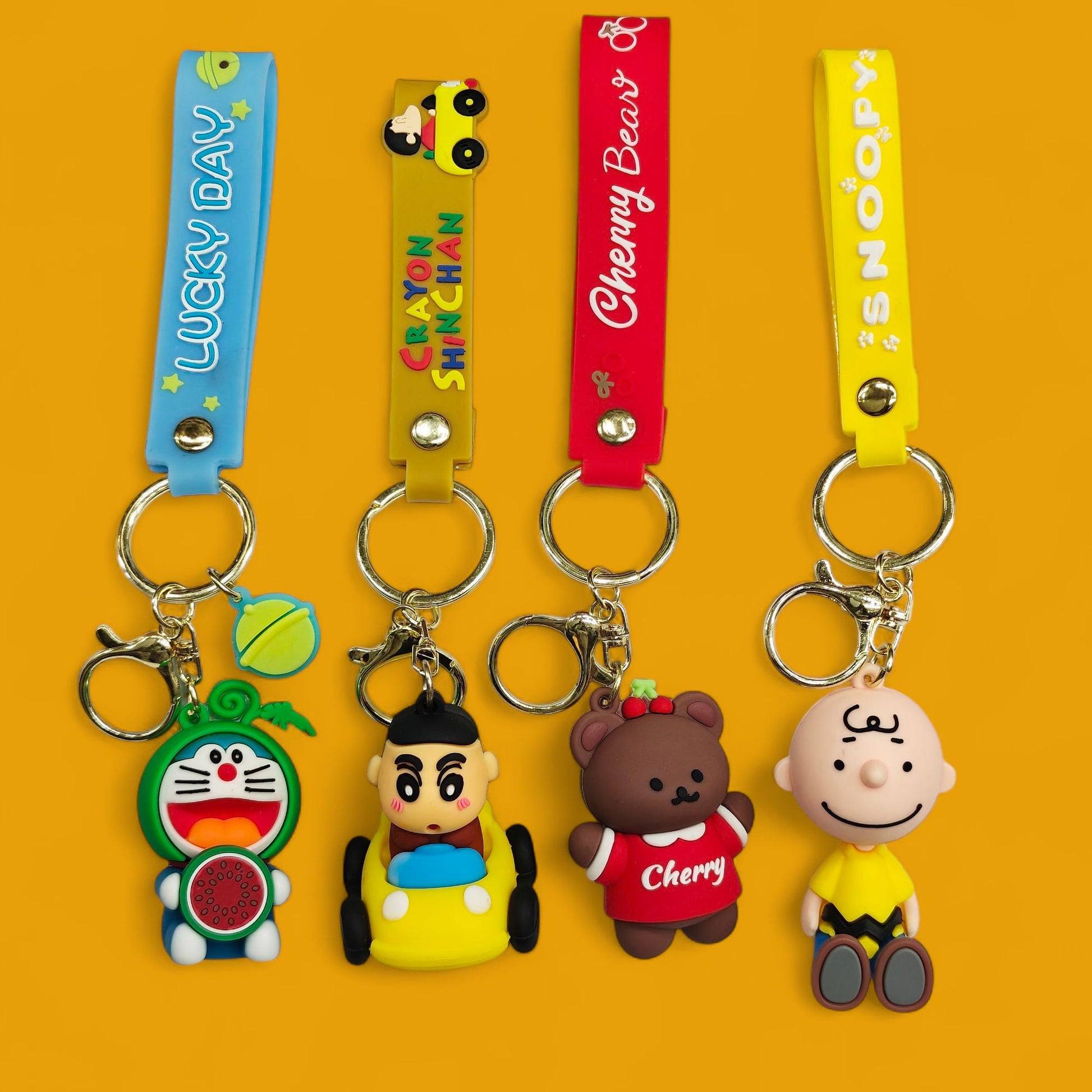 Cute Cartoons Silicon Keychains... Shinchan, Doremon, Snoopy and Cherry Bear. (Assorted).