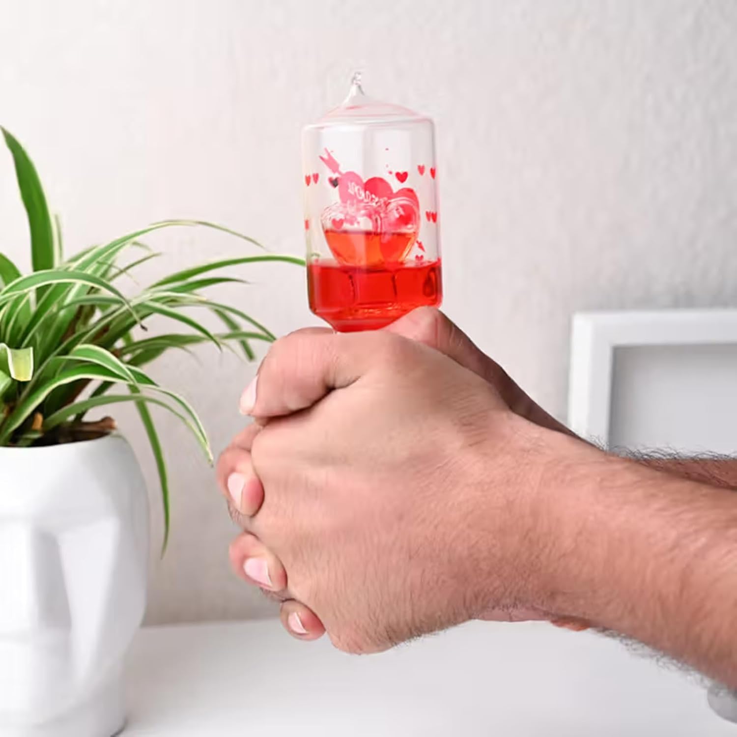 Surprise your loved one with this unique Red Heart Glass Love Meter! Also known as a hand boiler, it reacts to your touch, making it a fun and romantic gift for Valentine's Day, birthdays, or anniversaries. A charming keepsake for couples and a stylish home decor piece.