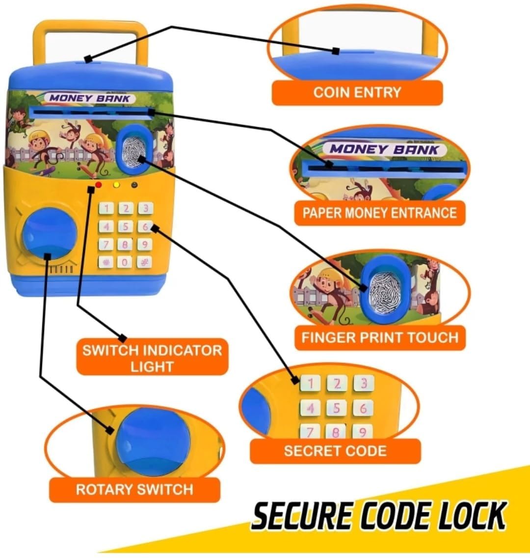 Money Bank ATM Machine for Kids with Finger Print Sensor Piggy Savings Classic Bank with Electronic Lock Password for Kids with Indian Music. Assorted Colours