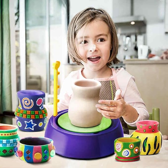 Pottery Wheel Kit - Battery Operated Pottery Wheel & Painting Kit for Beginners with Modeling Clay, Sculpting Clay & Tools