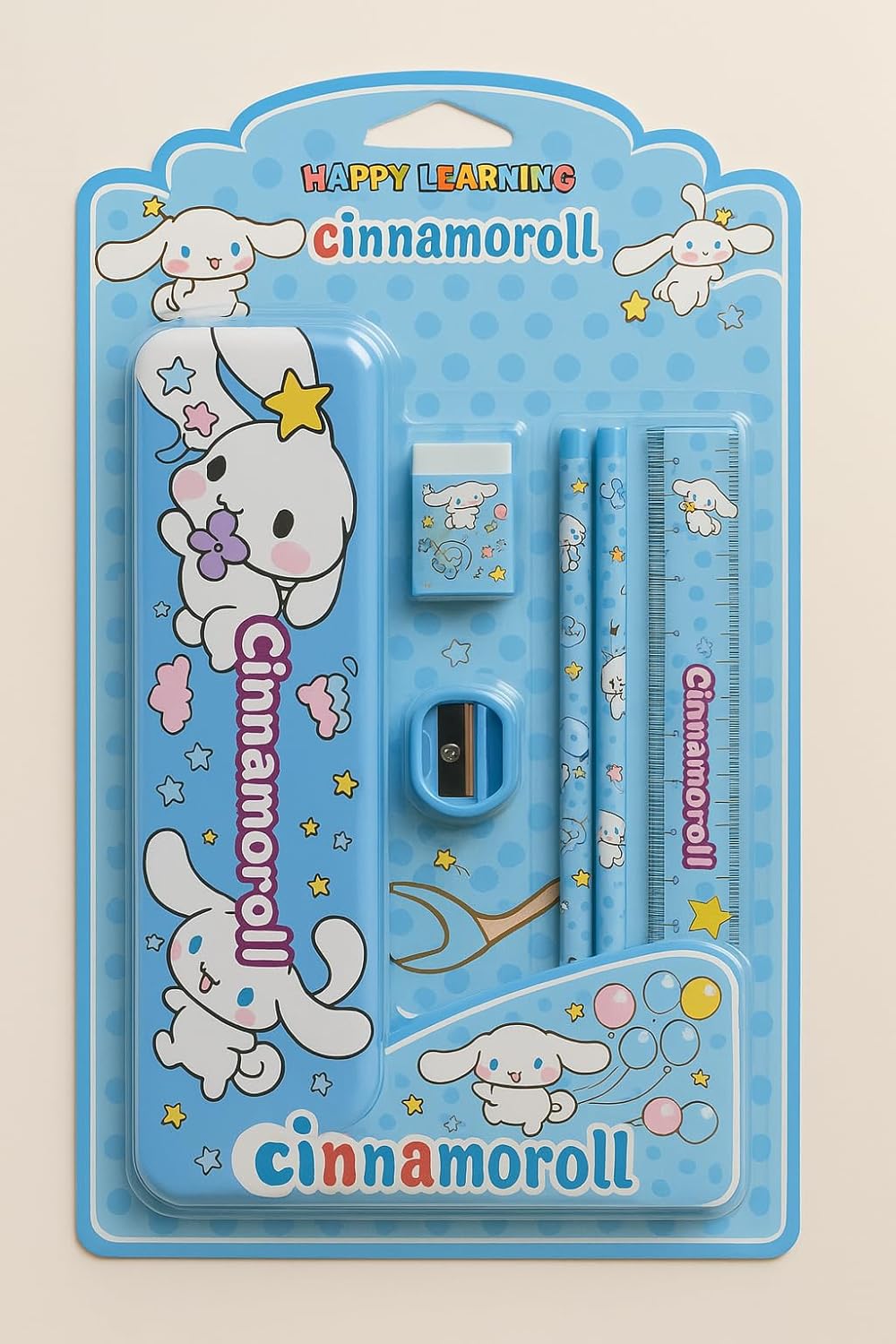 Make school time sweeter with this Cinnamon Roll-themed stationery set—includes pencil case, pencils, ruler, eraser, sharpener & more; perfect for gifting.